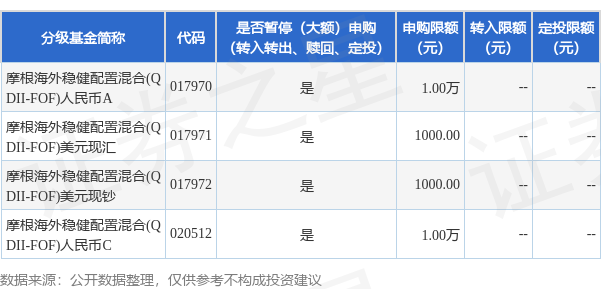 本站讯息,9月25日摩根基金管理(中国)有限公司发布《摩根国外谨慎确立夹杂型证券投资基金(QDII-FOF)挪动大额申购及按时定额投资业务的公告》。公告中提醒,为保证本基金的踏实运作,保护基金份额握有东说念主利益,自2025年9月25日起摩根国外谨慎确立夹杂型证券投资基金(QDII-FOF)挪动大额申购及按时定额投资业务,下属分级基金挪动明细如下: